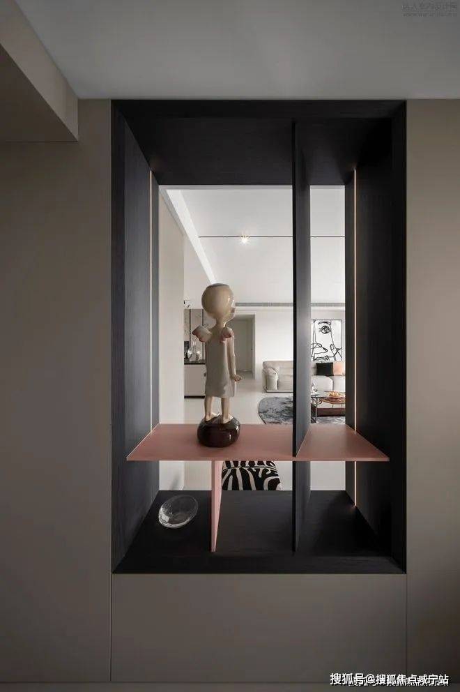 透明的电视剧墙,让视觉冲破了界限的桎梏,将后方的空间与客厅融为一体,形成了一种奇妙的互动与连接。
