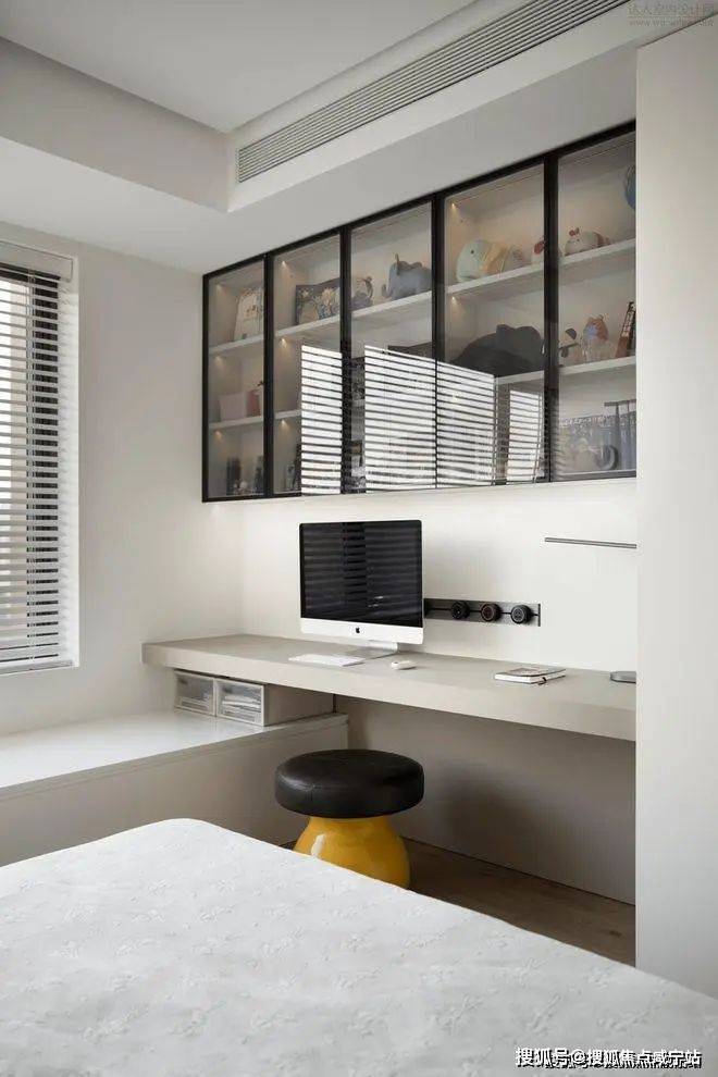 次卧以丰富的功能性展现了屋主款待宾客的艺术。尽管空间不大,经过精心规划,墙面与边角得到充分利用,巧妙设置了梳妆台、更衣区、休息区及储物柜。床周空间经过“精致三分离”设计,以迎合客人的各种需求。