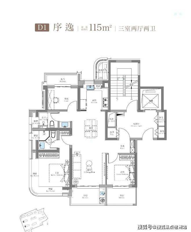 其中建面约115㎡鲲鹏阁三房户型是上海此前未见的全新王炸级产品
