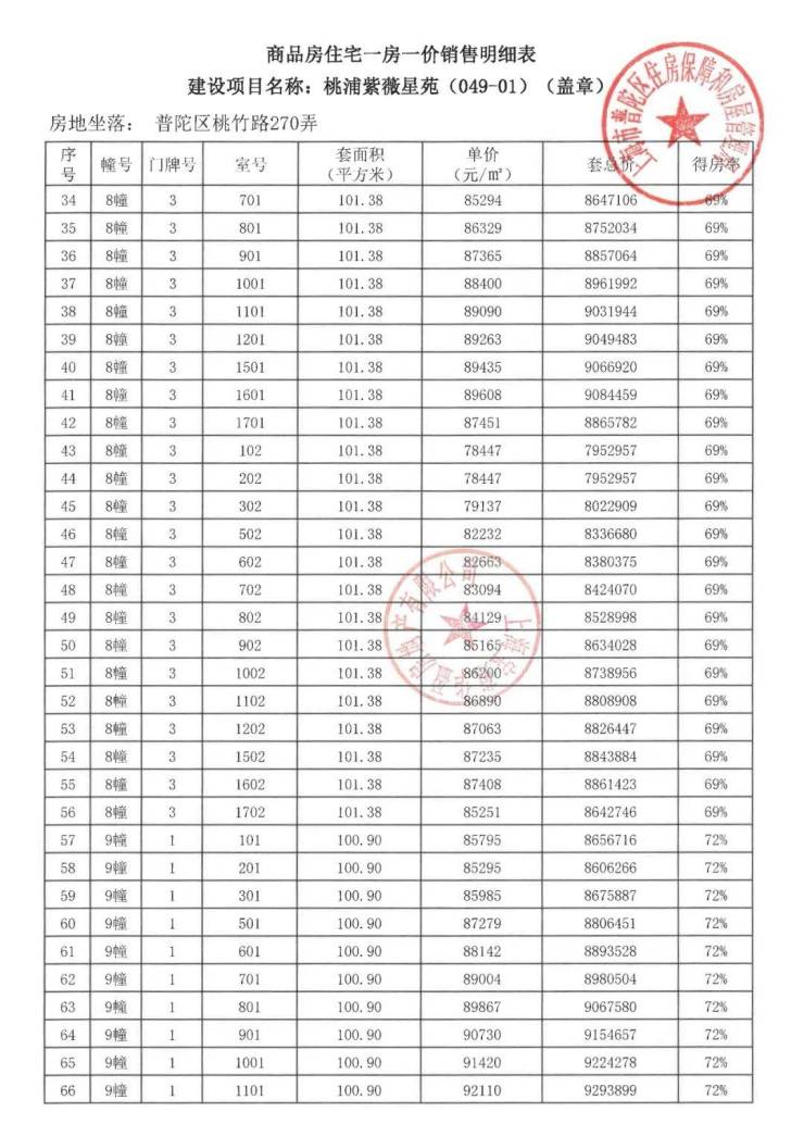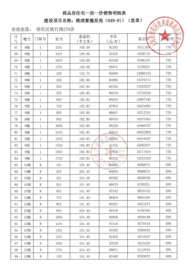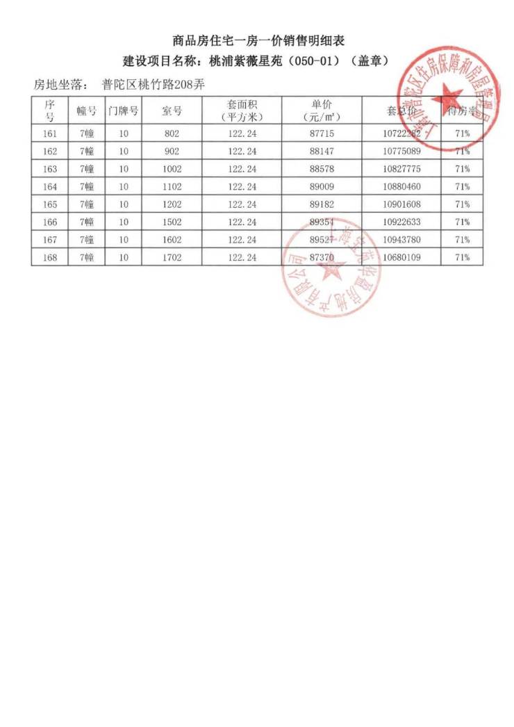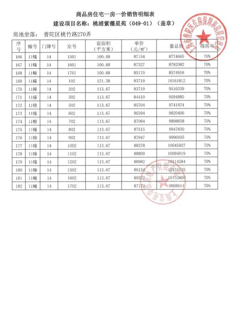 项目一房一价表▼