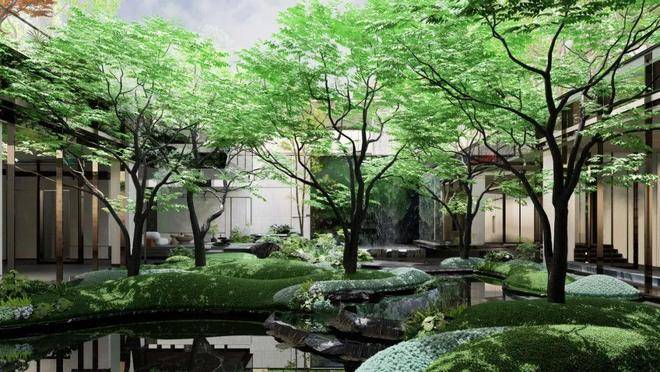 全龄活动空间,高端社交下沉会所,林荫会客厅......营造 青绿山水、瀑、溪、林、谷多重景致!