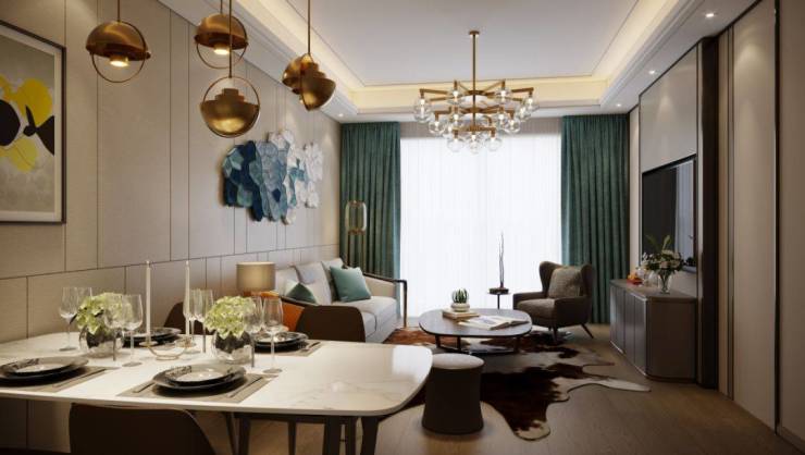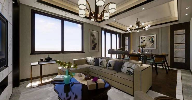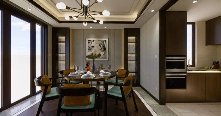 从产品形态上看,建邦国宸府打造的是金山新城极为稀缺的墅居产品,由高层+叠墅组成,建筑风格为现代中式滨海风格。其透露出的中式意境和构图美学我们可以从景观绿化一窥端倪: