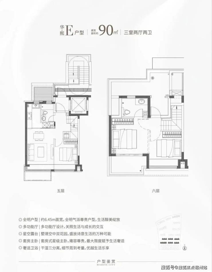 特别是这个 E户型,建面仅约90㎡,对于想住叠加但预算有限的购房者来说,面宽约6.45米,上下动静分离带,是个不错的选择!