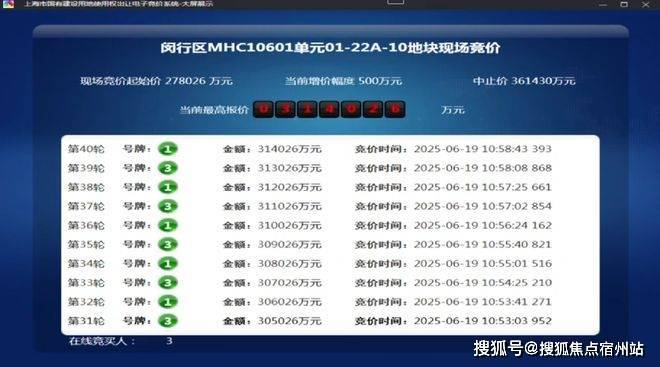 6月19日,2025年上海第五批次土拍,经过40轮竞拍,上海保利发展竞得颛桥镇MHC10601单元01-22A-10地块(即保利都汇和煦),利·都汇和煦售楼处电话:400-833-6309✅︎✅︎规划用地性质为住宅用地,出让面积4.05公顷,容积率为2。总成交价314026万元,溢价率12.95%。