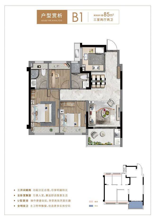 约85平三房户型,☑️☑️中铁世纪尚城售楼处电话:400 - 8377 - 020☑️☑️更是做到了三开间朝南,全卧室飘窗,拥有超大赠送面积,全明双卫,甚至主卫也附带飘窗,实用性拉满,而且该户型大部分房源总价在230万左右!☑️☑️中铁世纪尚城售楼处电话:400 - 8377 - 020☑️☑️