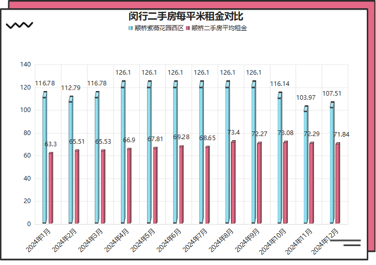 第三,闵行,颛桥紫薇花园(2022),我们来对比一下颛桥二手房大盘的租金数据: