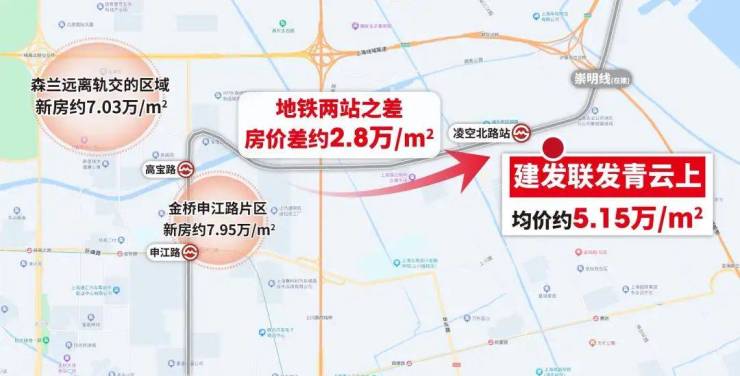 要知道,如今2站地铁外的金桥的申江地区中心,如今的新房均价已达7.95万/㎡。也就是说,2站地铁之差,建发联发·青云上的价格便宜了约2.8万/㎡。