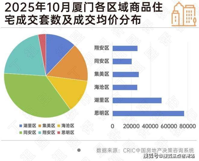同样连续两个月保持20%以上增长的厦门同样出现明显分化的态势,区域发展阶段和市场定位差异显著,供需结构呈现"中心高价低量,边郊低价高量"的特征,10月同安区成交套数占比最高达36%,成交价格却是各区最低。同安区内中海环东雲起表现亮眼,抓住营销节点,以性价比加持成为市场的主要增长点。