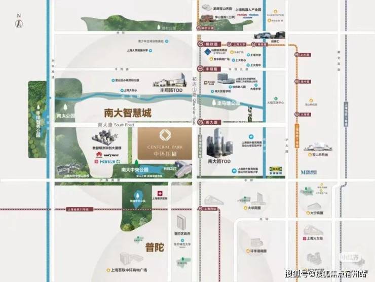 约20万㎡南大中央公园(建设中),紧邻社区500米。建成后与桃浦中央绿地共建的超级绿楔,形成上海中心城区最大连片生态矩阵。