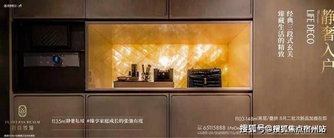 细节方面,进门入口处设置了一个经典三段式玄关,✅✅招商臻境售楼处电话:400 - 8824 - 258✅✅上面储物柜,下面鞋柜,中间置物区采用凝脂玉石材,鞋柜更配置鞋柜精灵;