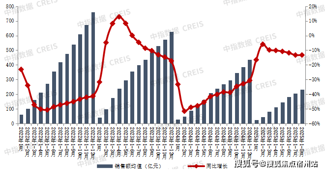 3、百强房企销售情况。据中指研究院数据统计,2025年1—8月中国TOP100房企销售总额为23270.5亿元,同比下降13.3%,降幅与1-7月持平。