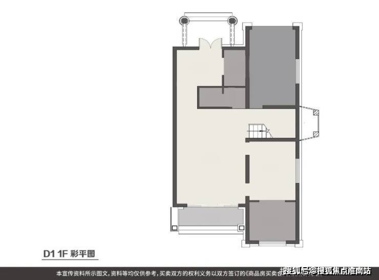 D1型双拼建筑面积:277.08-302.75平米(除6号279.46平米、7号277.08平米、8号281.7平米外,其余皆附带车库);