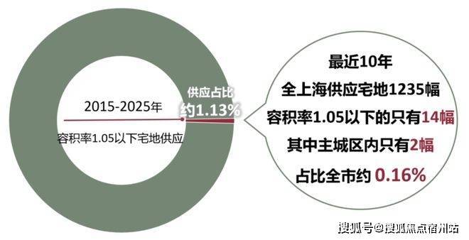 据克而瑞数据统计,2015年-2025年这十年,全上海累计供应1235幅宅地,其中容积率≤1.05的一共只有14块,占比仅约1.13%。更重要的是,这些低密地块绝大多数都地处郊区,主城区的凤毛麟角,仅有2幅!