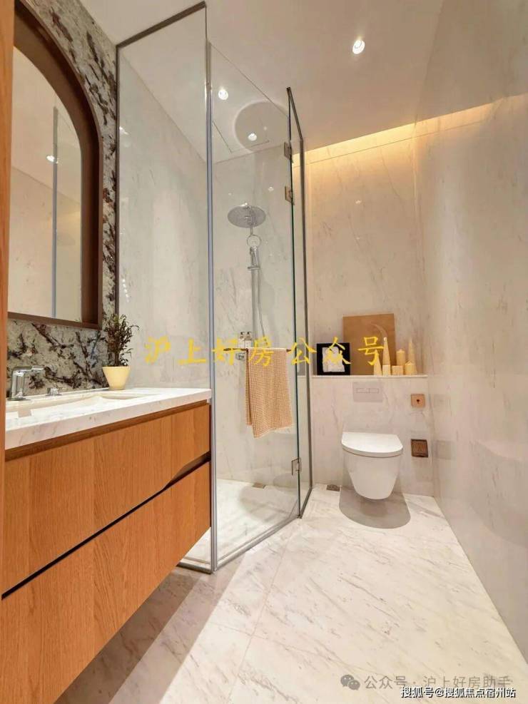 3.八种不同材质的奢石运用,卫生间地面全铺石材
