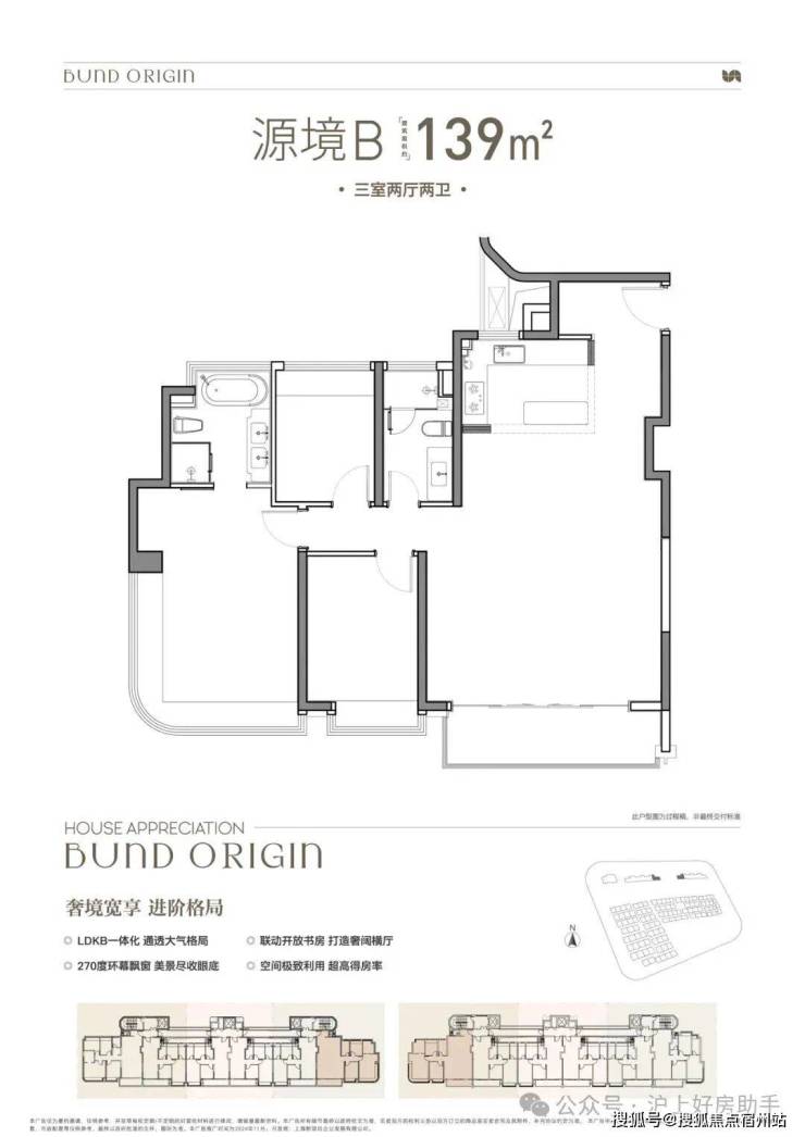 A户型是4房2厅2卫格局,三开间朝南+LDKB一体化+全卧室带飘窗+主卧套房设计+动静分离,居住功能性更强。☑️☑️外滩源著复兴里售楼处电话:400-1183-605☑️☑️