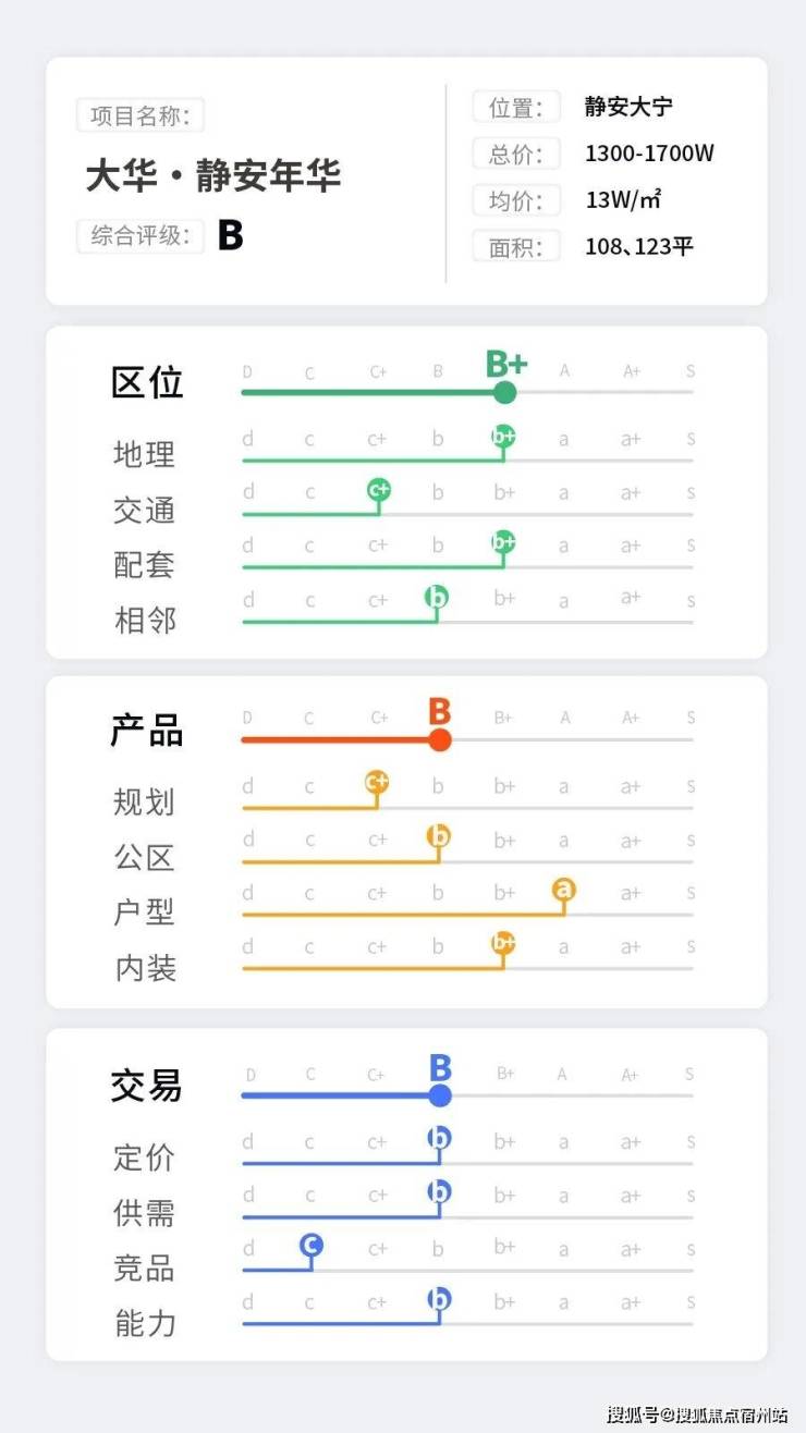 首先看 区位评级B+,其中地理b+,交通c+,配套b+,相邻b。