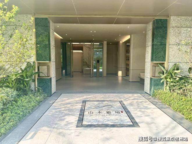 酒店式入户大堂通过石材、✅✅中建山水雅境售楼处电话:400-8824-258✅✅香槟金铝板和绿色奢石打造,也是精致有格调!
