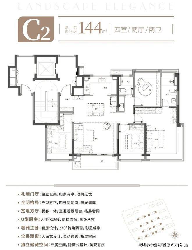 建面约144㎡4房2厅2卫户型