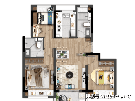 85㎡三室两厅一卫:紧凑型三房,三开间朝南,餐客一体,无浪费面积,适合三口之家,总价约 350 万起。