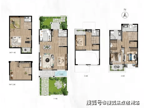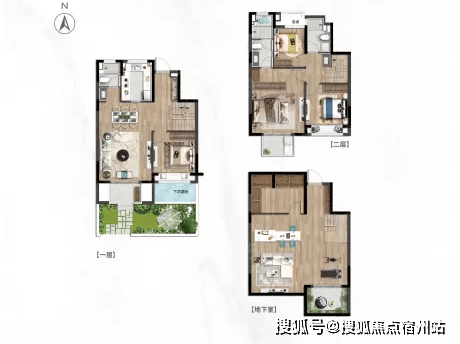 下叠(1-2 层):带地下室与南北双花园,入户即享庭院景致,地下室可改造为影音室、健身房,空间灵动。