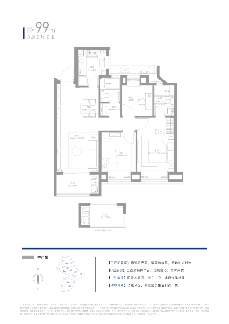 建面约99㎡3房2厅2卫,三开间朝南+全卧室及卫生间均带飘窗;整体看下来都有眼前一亮的感觉。套均总价预计仅约300万,性价比非常高!☑️☑️鹏瑞云璟湾售楼处电话:400 - 8377 - 020☑️☑️