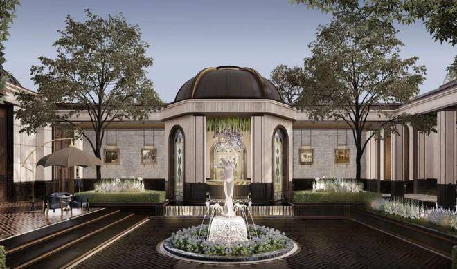 生动的海派经典场景,还从室外的园林景观延伸到了室内的公区。比如涵盖健身、阅读、宴请等 多重空间的架空层,能让业主足不出户享受现代功能的同时,感受海派的优雅萦绕。