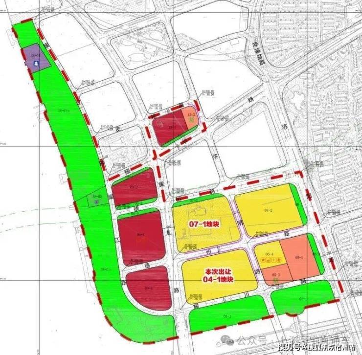 根据详细规划,这一片区主要涉及到11副地块, 包括4副纯宅地,4副商业、商办地块,3副教育用地及规划绿地等 。其中, 沿江首排商业、商办地块皆是限高50米,而07-1、08-2地块限高100米,04-1、05-4地块限高80米。