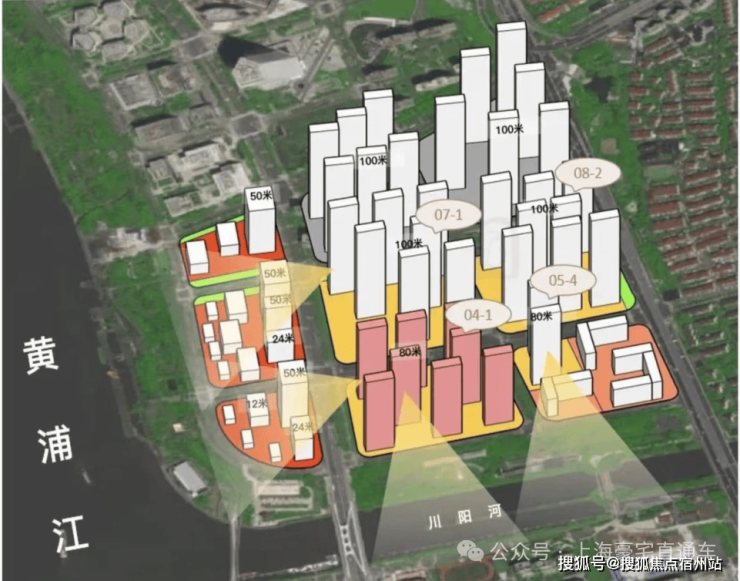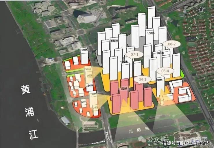 04-1地块住宅下限为1010套,限高80米。 同样有40%中小套型要求,100%全装修,无租赁用房/保障房。占地面积4.19万㎡,容积率2.9。 规划高层住宅,中高区可瞰黄浦江景。
