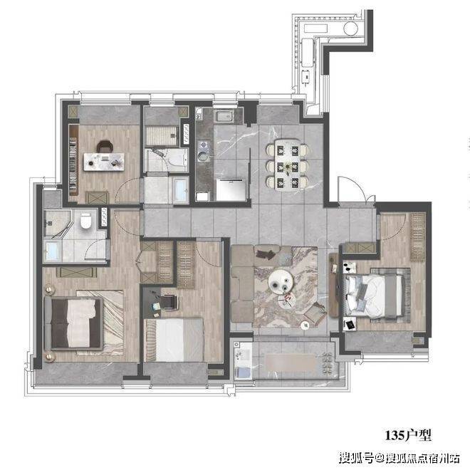 三进:尊享水苑-入户门庭仪式水景;下沉会所-私享品质生活;社区会客厅(约20m²)-度假式摩登私享泛会所。