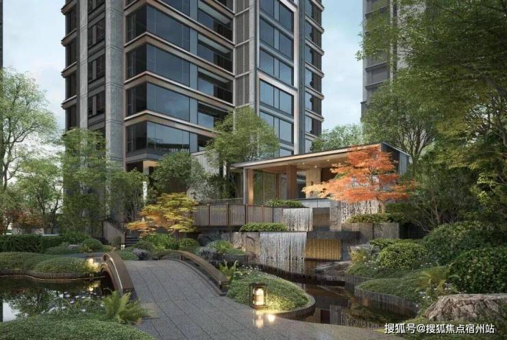 项目遵循建发中式建筑“儒门”设计理念,打造威仪门庭,入口处设计叠水景观及青云桥,寓意“群贤毕至,平步青云”,为业主营造归家的尊崇仪式感。绕过清逸不失威仪的东方门庭,迈入中式传统围水庭院,充满美好寓意的“华纹”设计,绘就一个向心聚拢的礼序庭院,雅致石院与中庭古树相映成趣,植物组团错落有致,营造出清逸山水园林之美,唤醒人们对林荫树下休憩闲聚的场地记忆。