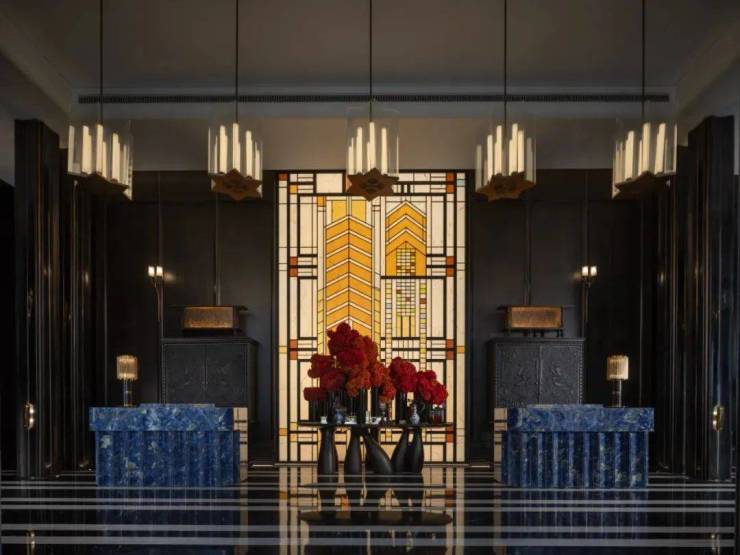 目光所及之处,各种精雕细琢的工艺、用材,则见不惜成本、兼容并蓄的匠艺。上海海鸥丽晶酒店同款的巴西金石材、储存量较少的玻利维亚蓝石材、华山公寓的掐丝珐琅工艺,在展现海派风情的同时,彰显奢华的质感。
