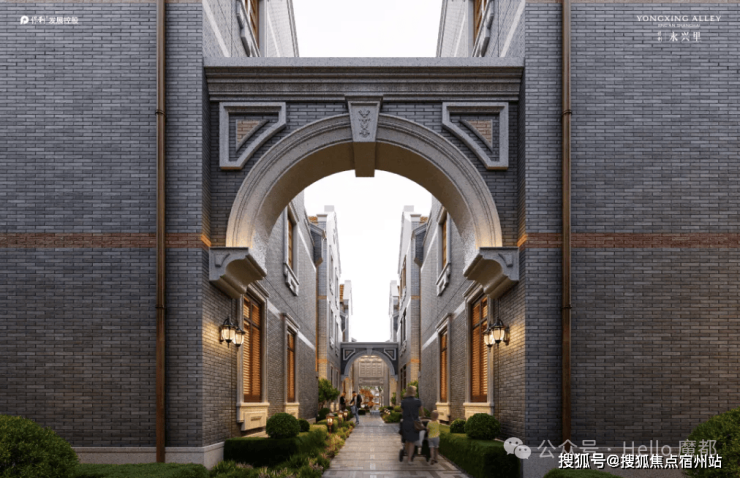 复刻海派里弄格局,融合骑楼、拱形门坊、红砖清水墙等元素,赓续衡复风貌区的历史文脉;