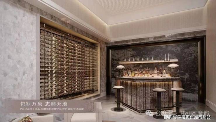 赏玩志趣厅:约5.55m地下层高,创意规制禅意空间/吧台酒窖/艺术收藏