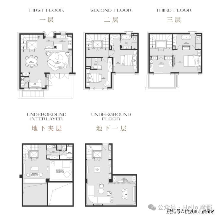 立体墅境:地上3层+地下2层(含夹层),地下室层高约5.55米,可改造为影音室、健身房、酒窖等多功能空间;