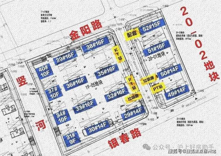 19-05地块:拟建7栋16F高层住宅、3栋9F高层住宅、1栋14F高层住宅、1栋10F高层住宅以及若干配套用房。