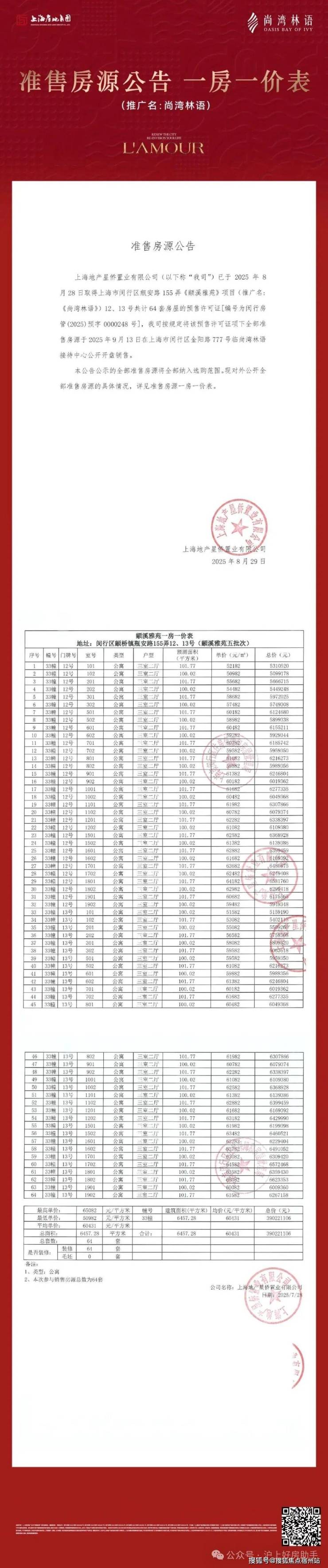 2022年9月23日,上海地产星侨置业有限公司以底价552183万元竞得闵行区颛桥镇生态隔带G9颛桥中心村段10-03、19-01、19-05、20-01地块(“城中村”改造项目-中心村),楼板价29760元/㎡,房地联动价为62000元/㎡!