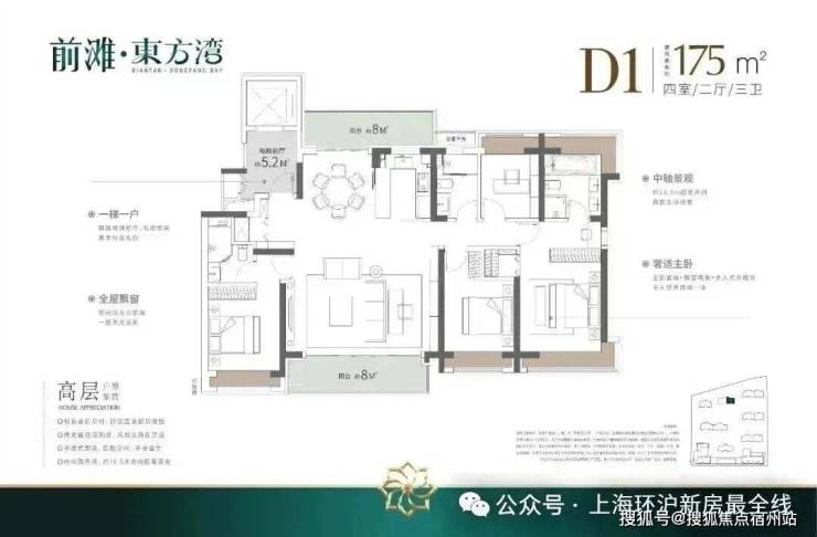 ✅✅上海 前滩东方湾 售楼处电话☎:400-833-6309(预约看房热线) 如果有进阶改善置业需求的客户,可以选择 建面约140/175㎡4房2厅3卫!