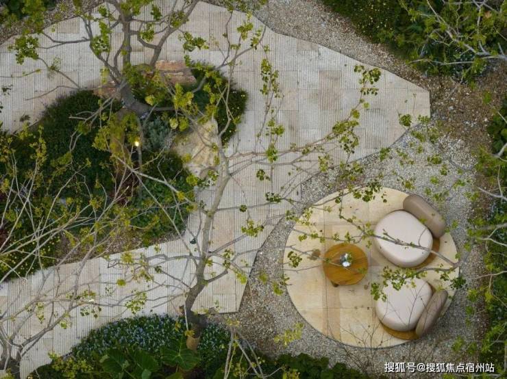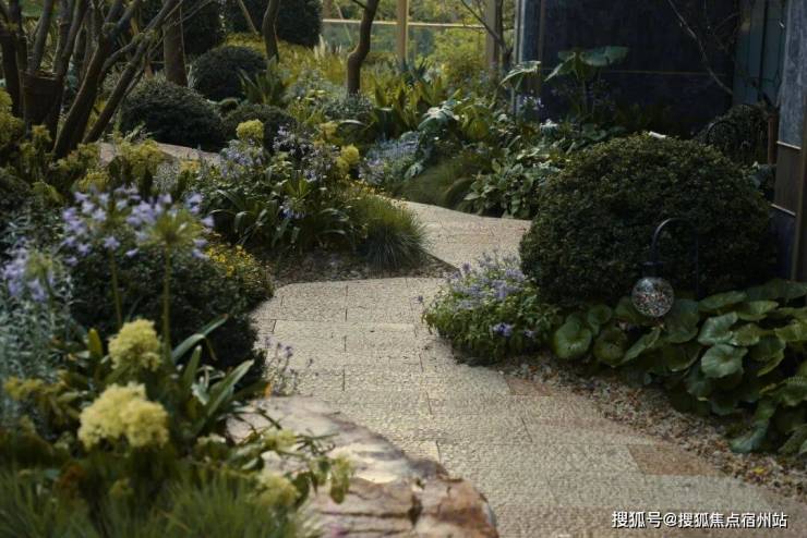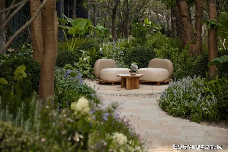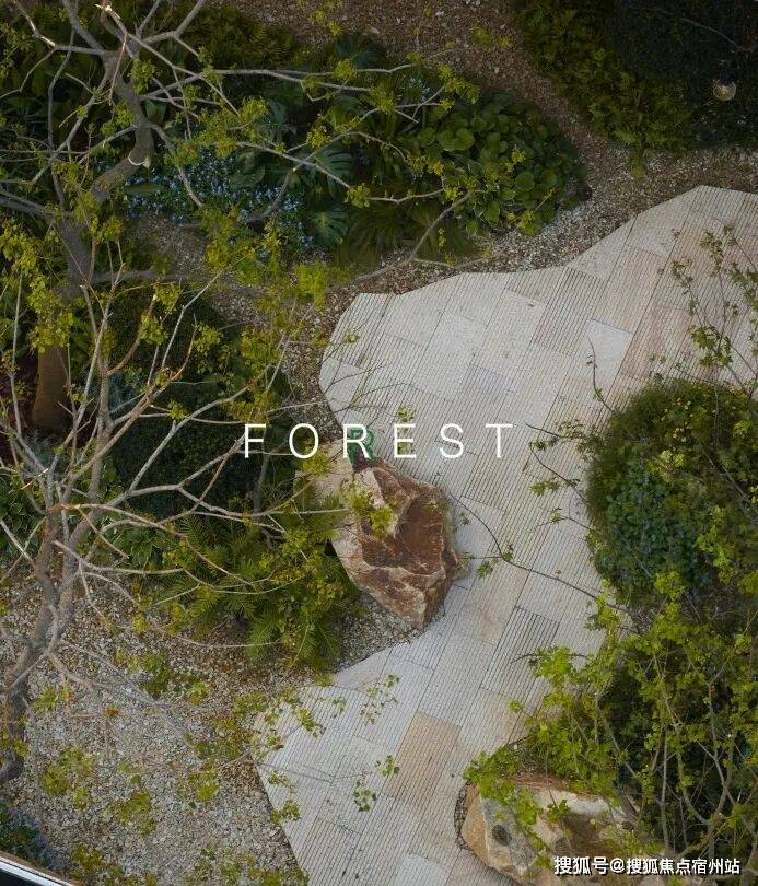建筑的硬朗线条与植物的柔性共生,不规则石板小径蜿蜒延伸,若隐若现于光影之中。两侧植被自由生长,枝叶交织,生成层层递进的空间韵律。