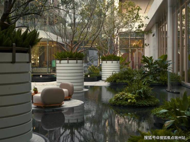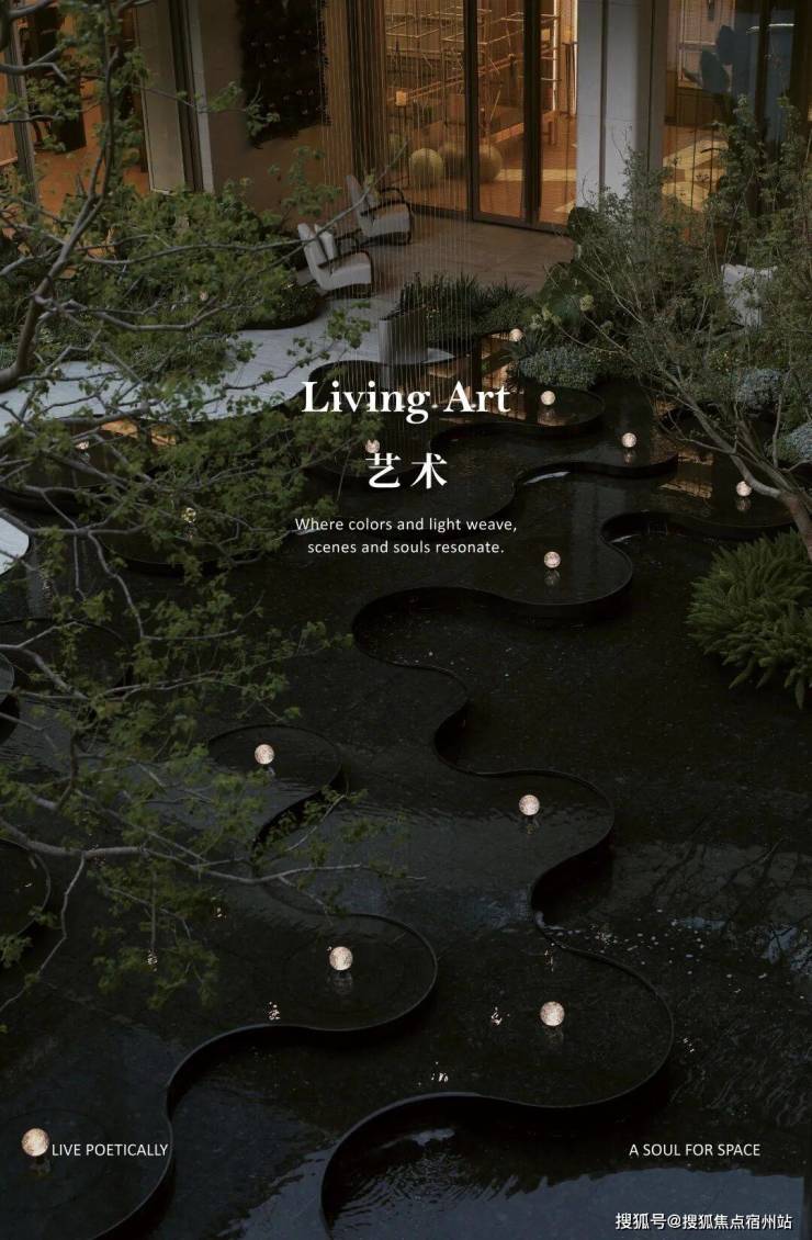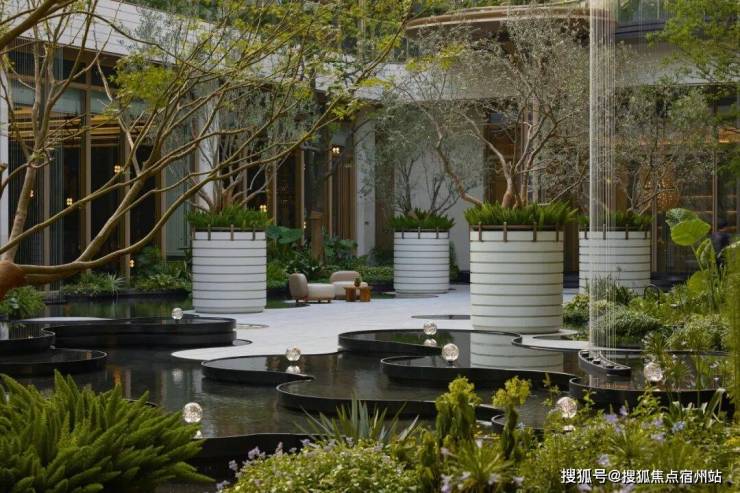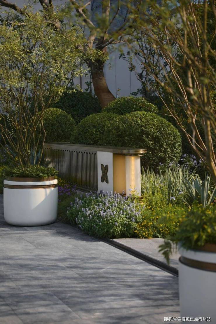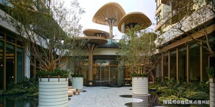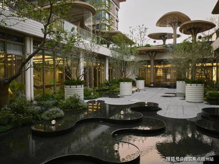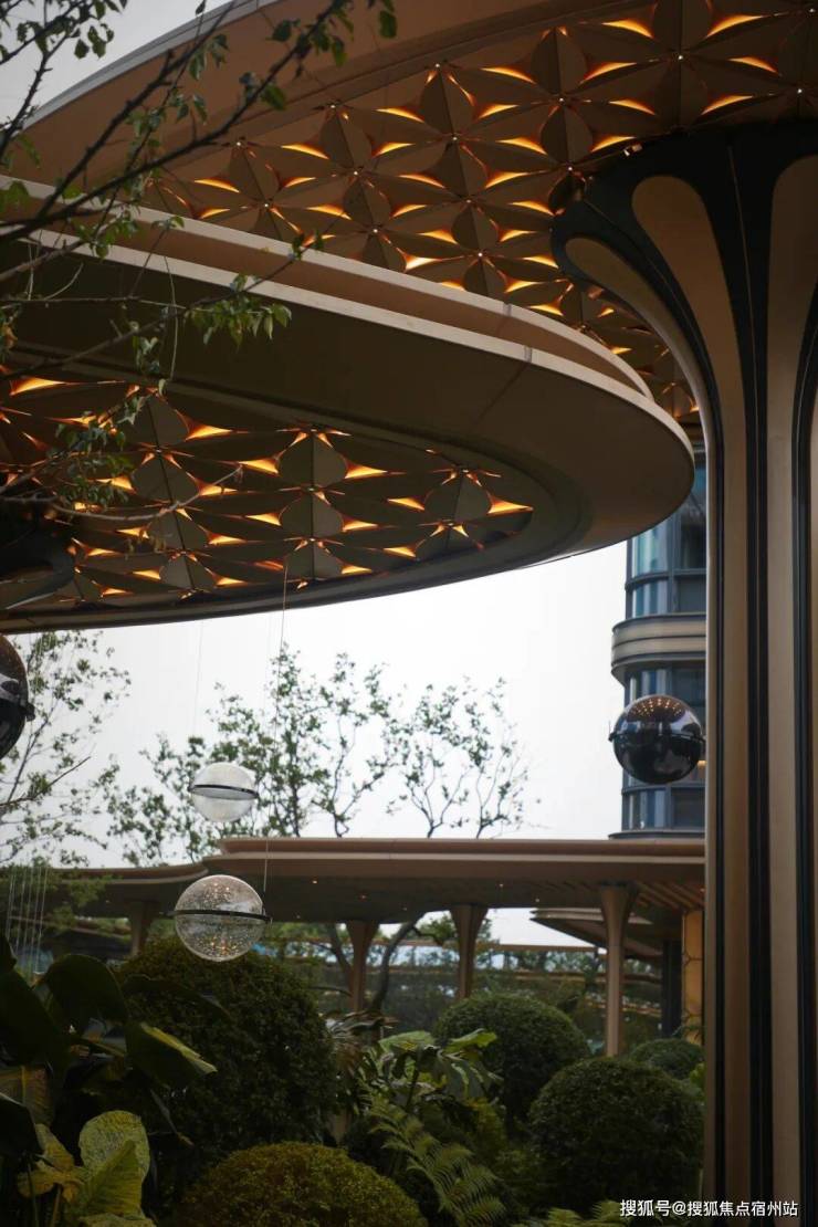 景观方面,它结合郊野公园特色,打造出 浮岛美学园林,呈现出层层递进的秩序之美,传递着生活与归心的仪式感。