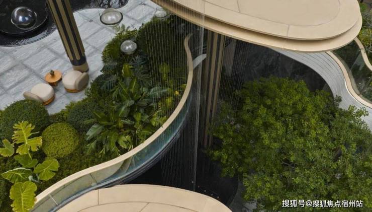它也采用多见于豪宅新盘的 风雨连廊,打造风雨无阻的归家体验的同时。风雨连廊的造型与景观巧妙呼应,别有意趣。