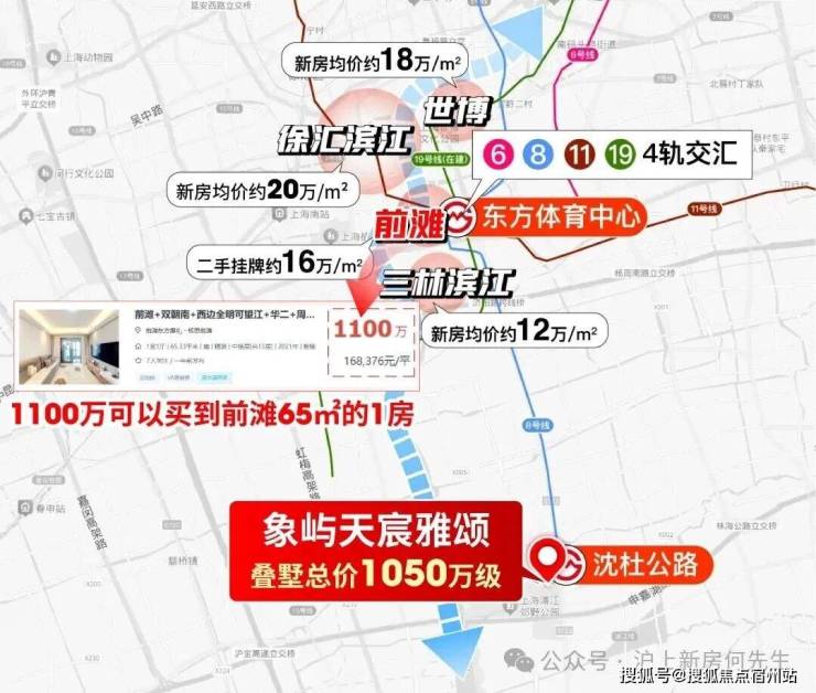 我们来看这条黄金轴的房价,世博新房18万以上,徐滨20万左右,千万预算似乎连门槛都摸不到。