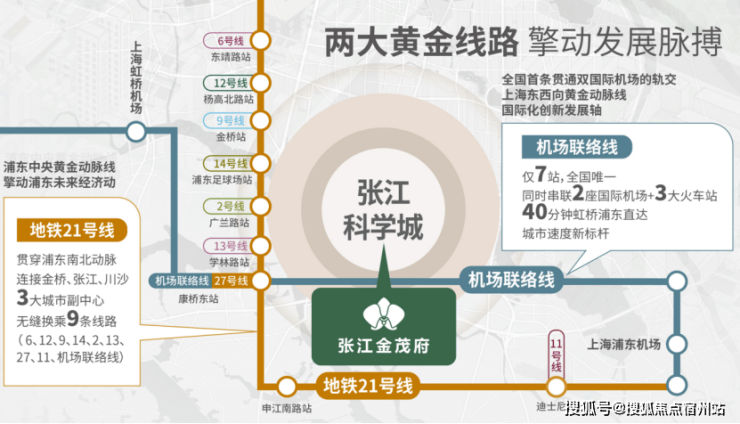 南北贯穿张江科学城的21号线(在建中),则进一步打通项目与张江的价值链条。