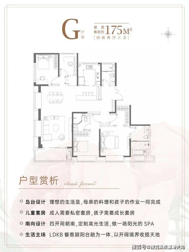 建面约175㎡4房3卫,几乎是上海改善的终点户型。
