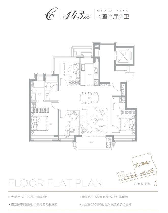 以已经开放样板间的建面约143㎡户型为例: