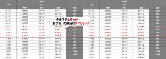据悉中间层优惠下来后,单价约5.7万/㎡,这个价格你也可以当成实际均价。