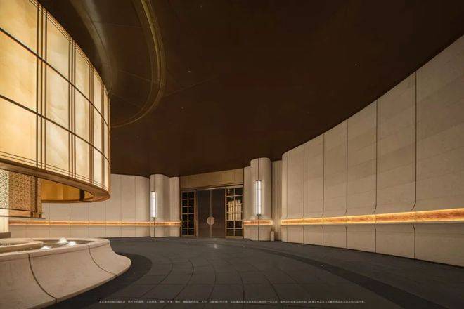 大量的艺术定制,让招商序化作耐人欣赏的艺廊。 大门墙面橙皮红腰线定制,与沉香米黄石材形成鲜明撞色,仅这一项石材打磨,耗费就近百万