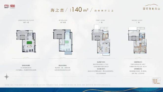这个四房虽然建面只有138㎡,但因为是5层叠墅的高得房率,以及室内空间的高效利用,其功能和尺度感,给人的感觉十分惊艳。
