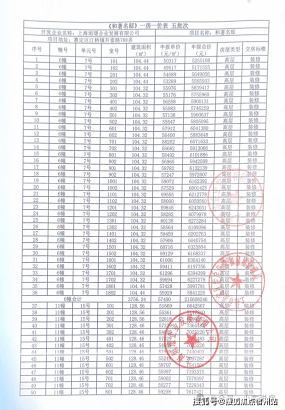 附一房一价表!欲购从速!