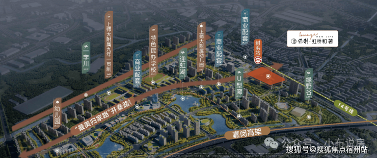 轨交:地块与地铁14号线终点站封浜站的直线距离不到500米,坐一站到乐秀路,未来可以换乘嘉闵线(在建),连接大虹桥、七宝、春申等板块。