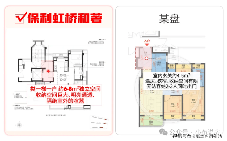 相比其他百平米3房玄关的逼仄、收纳空间少的问题,保利虹桥和著本次所有户型都做到了类一梯一户,享全明独立电梯厅: